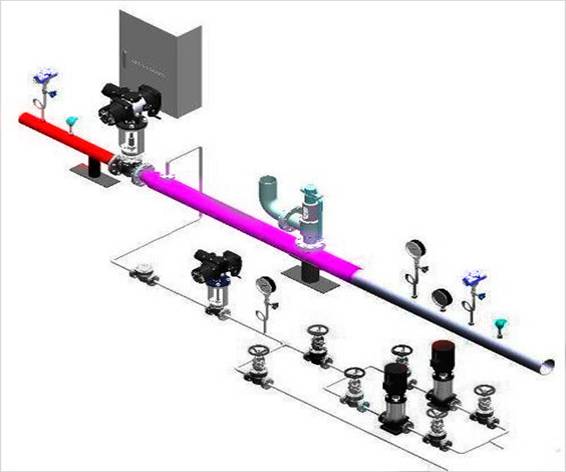 減溫減壓裝置由減溫減壓閥、節(jié)流孔板、電動給水調(diào)節(jié)閥、安全閥、節(jié)流閥、截止閥、止回閥、蒸汽管道、給水管、法蘭、緊固件等組成。