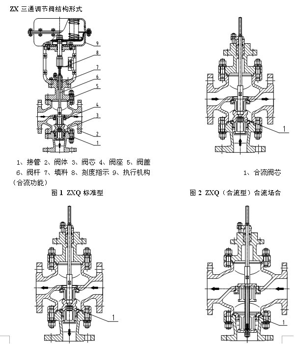ZXX(Q)型氣動簿膜三通高溫調節閥采用賀筒型薄壁窗口形閥芯結構,不同于柱塞形閥芯的襯套導向。配用多彈簧執行機構,具有結構緊湊、重量輕、體積小、拆裝方便等優點。廣泛應用于精確控制氣體、液體等介質,工藝參數如壓力、流量、溫度、液位保持在給定值。適合于把一種流體通過三通閥分成二路流出或是把兩種流體經三通閥合并成一種流體的場合。