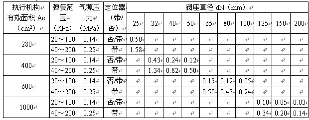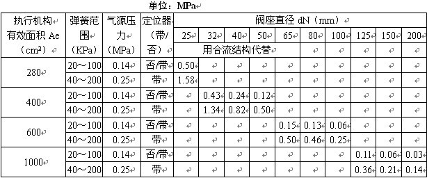 注 1)對于ZXQ(X)W型三通波紋管密封調節閥,最大允許壓差為1.0MPa,表中數據若數值小于1.0MPa則不變,若數值大于1.0MPa,則取值1.0MPa。