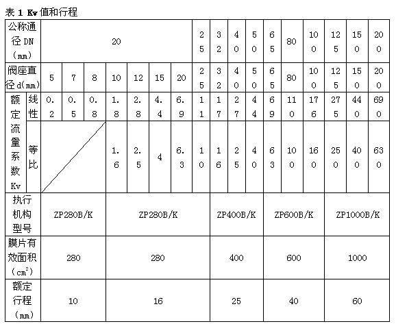 注 1)對于ZXPW型單座波紋管密封調節閥,最大允許壓差為1.0MPa,表中數據若數值小于1.0MPa則不變,若數值大于1.0MPa,則取值1.0MPa。