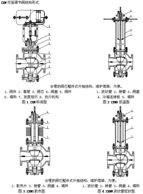頂?shù)住与p導(dǎo)向雙座調(diào)節(jié)閥,工作時(shí)穩(wěn)定性好。