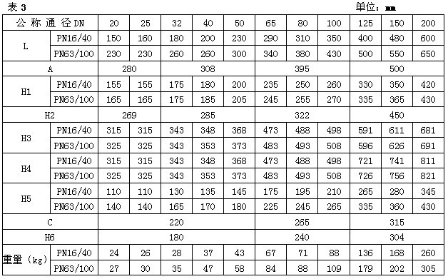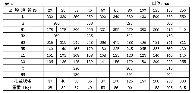 注 1)表中重量為PN16數(shù)據(jù),也可安裝側(cè)裝式手輪。