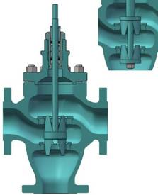 切斷閥是由氣動(dòng)薄膜執(zhí)行機(jī)構(gòu)與閥本體兩部分組成,中間用三根立柱或支架相連成。切斷閥有三種形式:單座(P)、套筒(M)與三通(N),其結(jié)構(gòu)與原理見下圖。